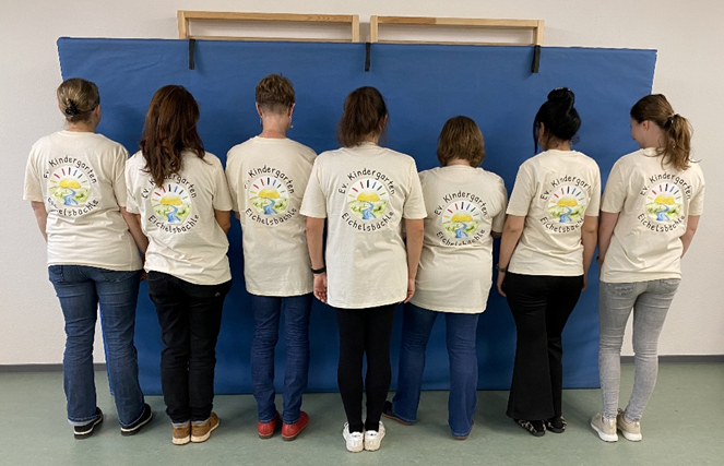 Wir freuen uns riesig: Durch die Unterstützung des Fördervereins hat das Kindergartenteam neue T-Shirts bekommen!